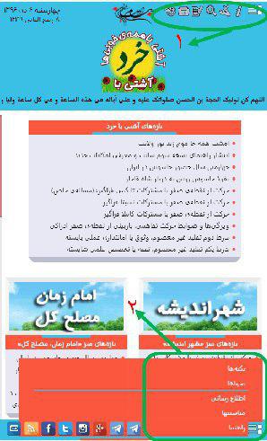 در تمامی صفحات ابزار سرصفحه (دایره ۱) و ابزار پاصفحه (دایره ۲) تبدیل به منو شده است.  (تصویر شماره ۱ و ۲)