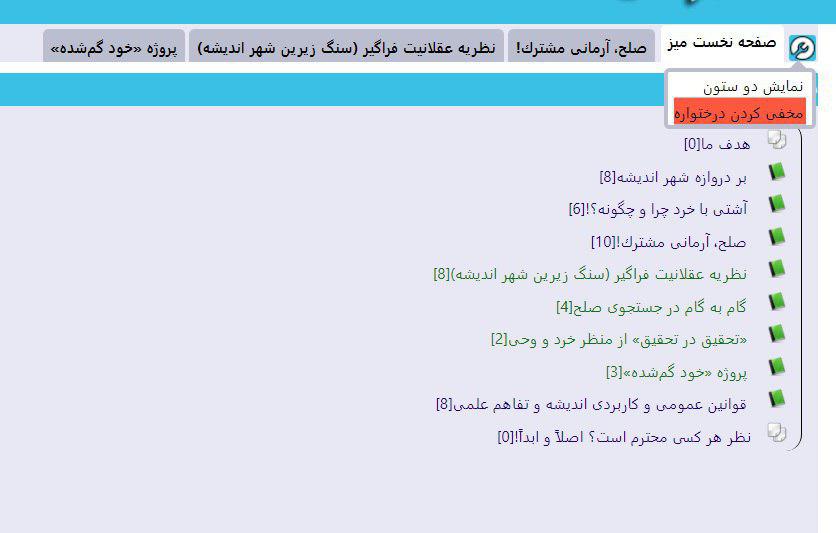 با کلیک روی مخفی کردن درختواره، درختواره پنهان شده و  اجزاء سمت چپ صفحه به تنهایی نمایش داده می‌شود.